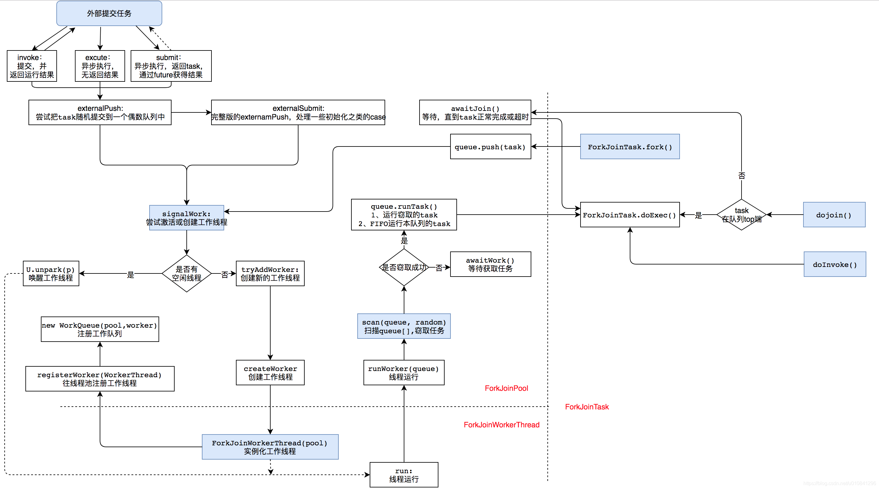 到这里,有关 ForkJoinPool 相关的内容就算是结束了,为了让大家有个更好的理解 fork/join 机制,我们还是画几张图解释一下